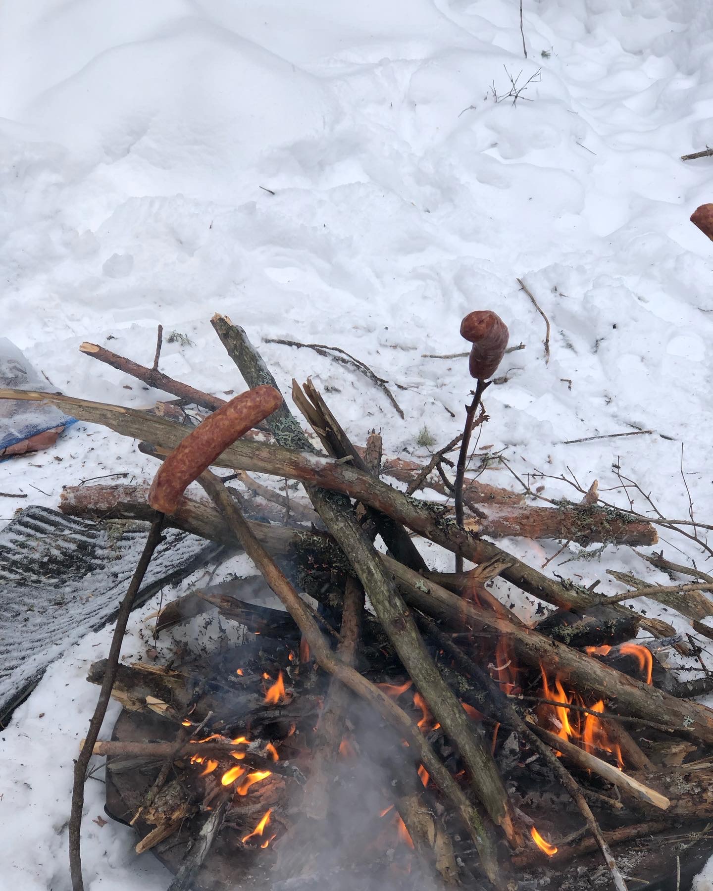 Lunch on the trail, brats over a fire